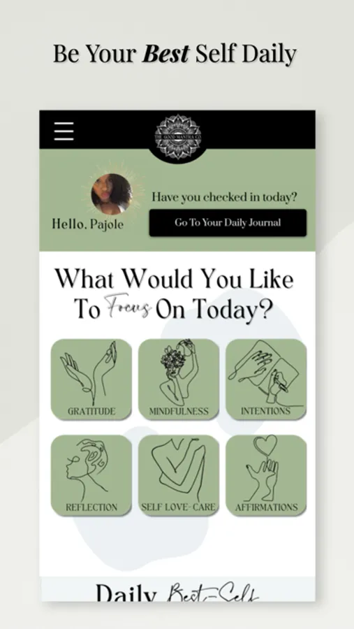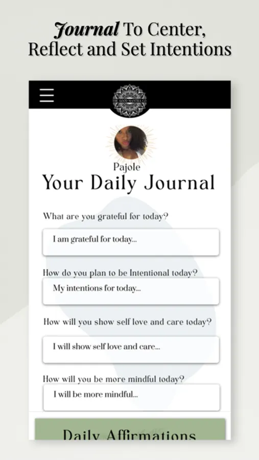 - Daily check-in journal to help you center, reflect and set intentions for the day.