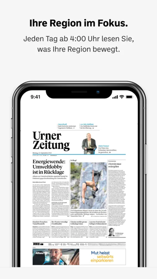 Die «Urner Zeitung» steht täglich bereits ab 4 Uhr morgens in der E-Paper-App bereit. Die Ausgabe wird wahlweise automatisch oder manuell heruntergeladen. Sobald die aktuelle Ausgabe heruntergeladen ist, lesen Sie diese auch ohne Internetverbindung, zuhause oder unterwegs.