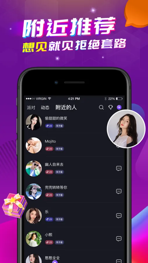 [Friends and Dating] Chat with people nearby with one click, and if you have a good chat, just talk to each other! Real social app on earth