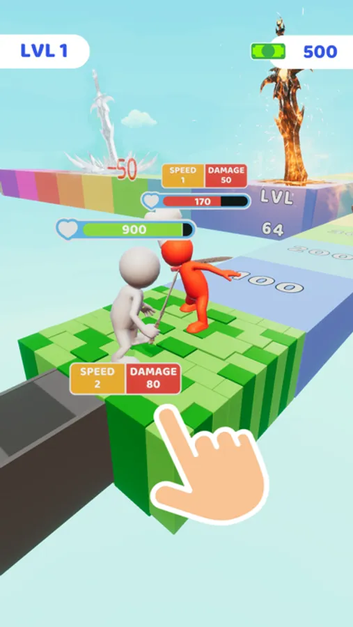 Are you ready for a big fight at the level end? More importantly, do you have the right weapon? Watch out for the obstacles and try to prepare the strongest possible sword at the end of the level.
