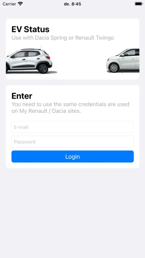 To use the application, you need an active account on the My Renault or My Dacia website or application. You can log in with the data provided there.