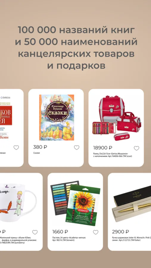 В нашем официальном приложении предоставлен каталог из огромного количества книг, канцелярских товаров, игр и многого другого. Вы можете выбрать наиболее удобный способ доставки и сделать заказ в один клик, оплатив свою покупку онлайн или при получении.