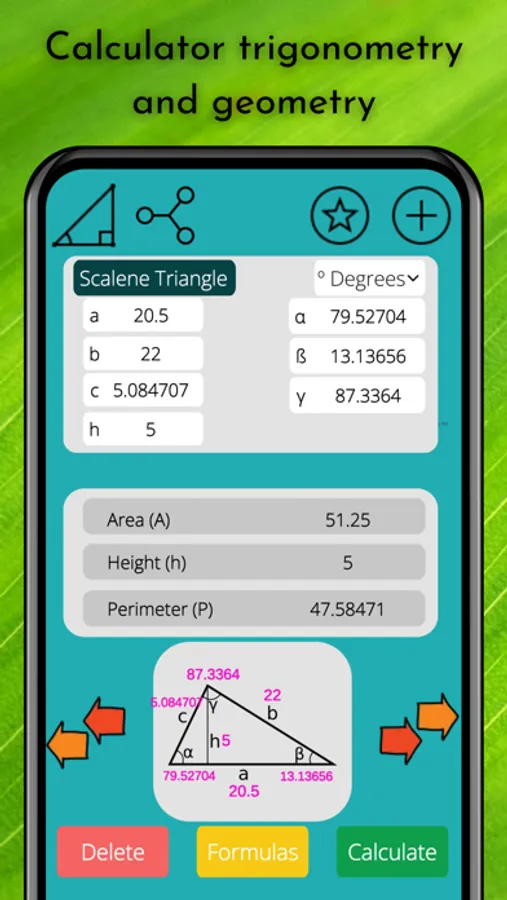 -Teachers: Do you need to create new trigonometry exercises or solve math problems? New geometry formulas? Different math tests for students? Create material with this Trigonometry Calculator! Our geometry solver with our angles calculator in radians or degrees could you do different geometry-calculator for students to learn geometry and trigonometry formulas. With this trigonometry calculator and geometry solver with angles calculator your work will be easier.