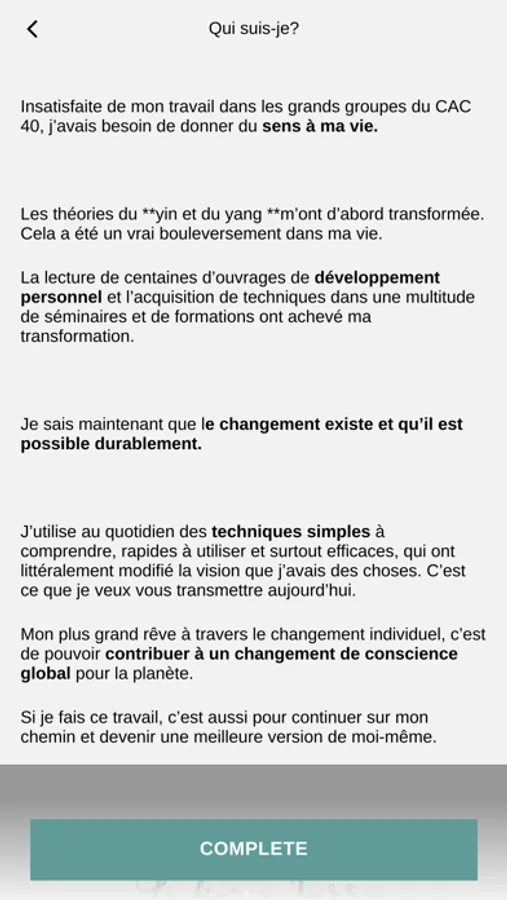 Ma passion, c’est de participer à l’évolution harmonieuse de notre planète, et ma motivation, c’est de voir chez mes clients la peur se transformer en joie et en gratitude.