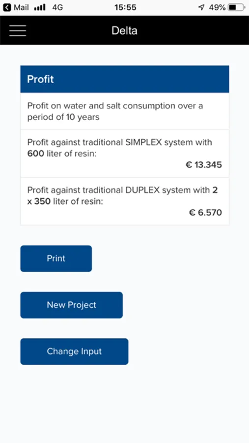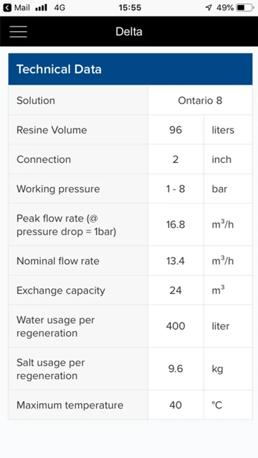 The Delta Water Softeners function without electricity, based on volumetric command. Delta softeners are friendlier to the environment and use remarkably less salt and water. This app will give you our best proposed solution for your water needs. Fill in our form and download your result with all the detailed information.