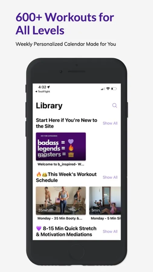 The b_inspired team sends you a Personalized Weekly Workout Calendar to follow so you don't have to think about what workout to choose each day