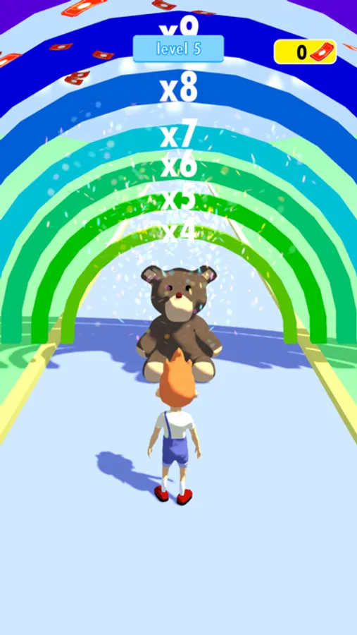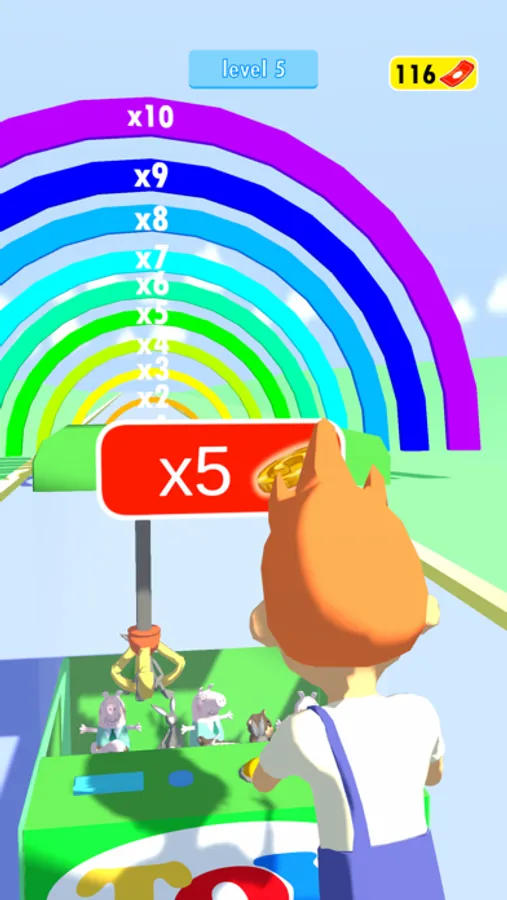 Do you like going to the amusement park? If your answer is yes, you are in the right game. Let our character play with various games and rides, from a roller coaster to a duck shooting game while collect coins. Fold your coins according to your success in the games and rides so make the teddy bear waiting for you grow at the end of the level.