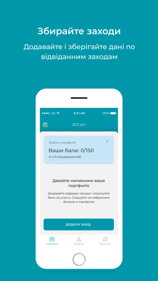 Запам'ятаємо ваші заходи, підрахуємо бали, підготуємо портфоліо до друку.