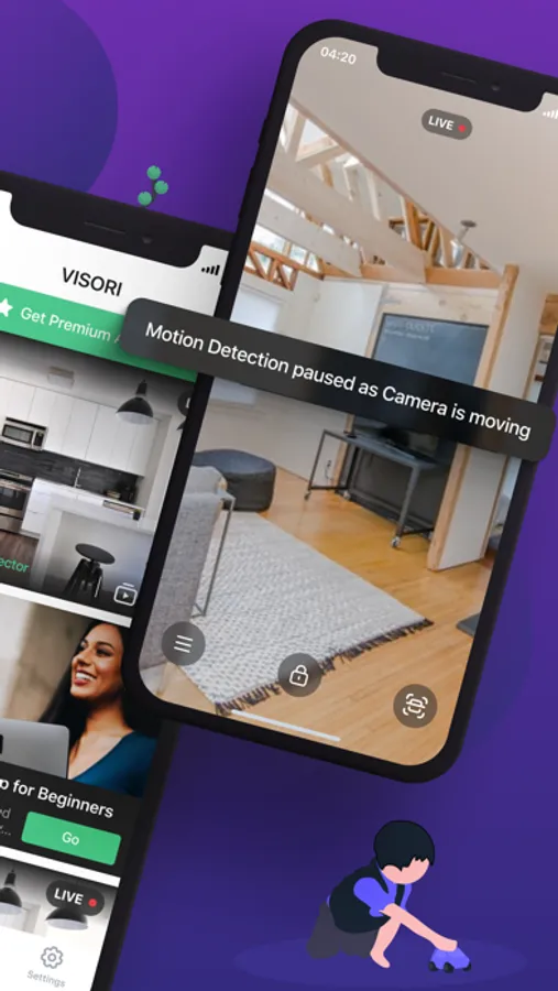Visory Security is a CCTV camera on mobile for incredible home protection or pet care. Use it as your pet monitor, and even CCTV camera recorder or video camera for your cam security system. To use it as a video dog monitor for live streams, you need to link together at least two devices (smartphones or tablets) – one for capturing a video and one for watching it.
