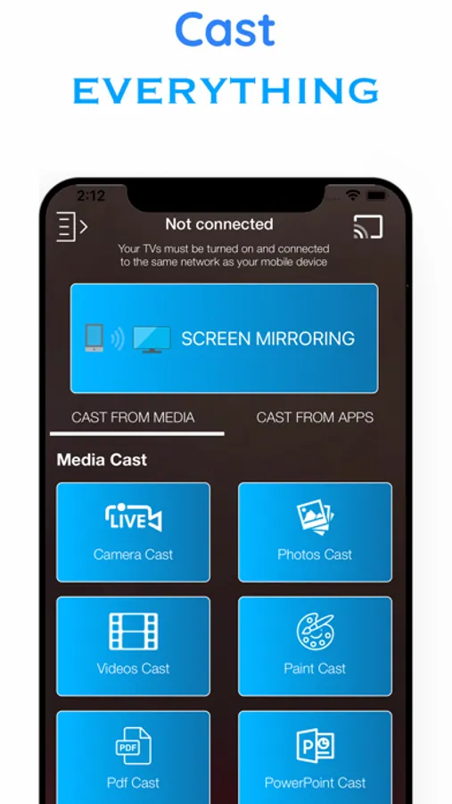 Screen Mirroring & Cast for PC/TV/Phone is the best app for Connect & mirroring your phone to your TV. Screen Mirroring for Samsung TV, LG TV, Sony TV, Smart TV, Roku TV, and Web Browser. Cast to TV app helps you to cast Trending Movies onto TV as fast and stable. This Casting App will assist you to mirror your phone screen on smart TV. Now bring your mobile screen to the big TV. Live screencast, from mobile to other devices and From iPhone/iPad to TV. Get Best Screen Cast App to Connect & Mirror your Phone onto Smart TV Screen or PC.
