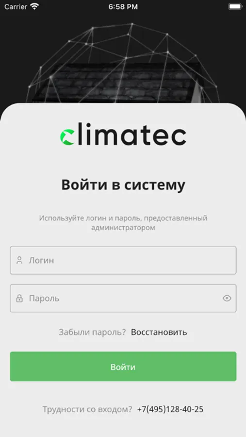 Приложение для клиентов компании Climatec, подключенных к системе "Умный климат". Доступ к личному кабинету предоставляется системным администратором компании.