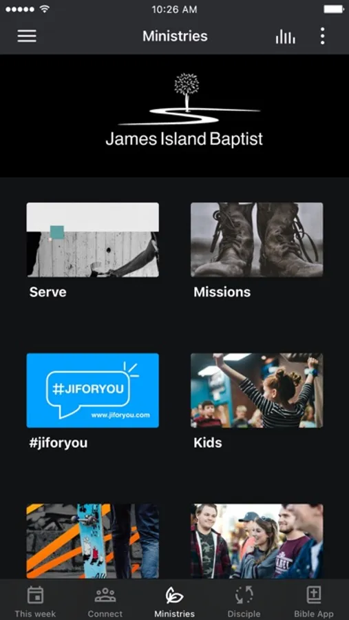 Welcome to the James Island Baptist app. Providing a relevant way to interact with those that journey with us here at JIBC. You can stay connected to upcoming events, catch up on the latest service, give online, connect with your group, and grow in your walk with God as a disciple maker. Let's Journey Together - JIBC Staff and Family