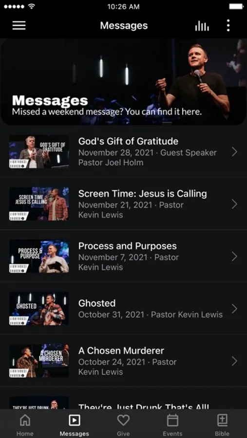 Stay connected with the day-to-day life of Lighthouse Church! With this app you can: watch or listen to previous messages, stay up to date with push notifications, watch our live services at 9a +11a, and find out what events are happening at Lighthouse.