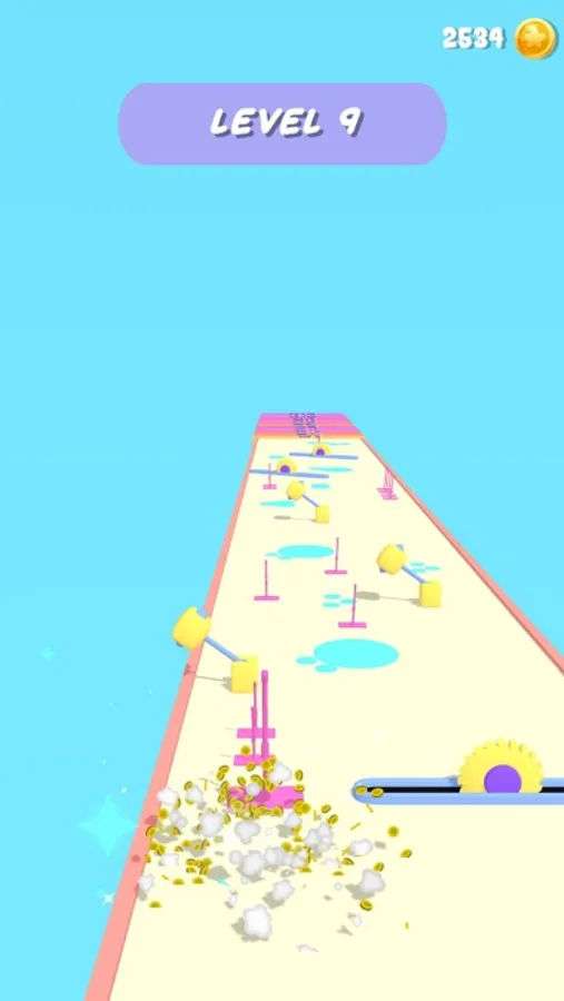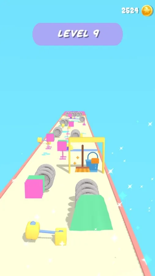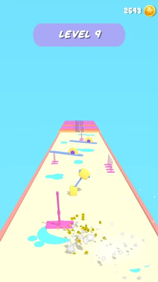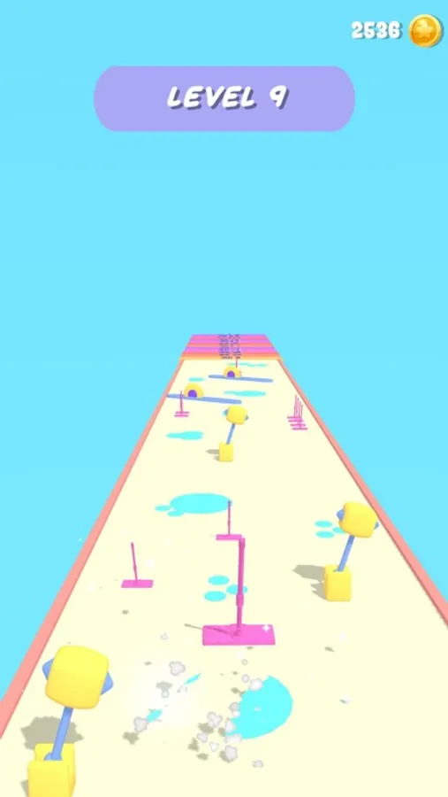 Collect the cloths on the platform without hitting the obstacles and clean the plates on the platform. Experience the realistic fabric feeling to the fullest. You can earn money as you clear, but remember that you can shrink and disappear when you hit an obstacle. Clean the water on the floor by collecting the mats and earn money as you clean. The more you crash into the obstacles, the smaller they become and you clear very little space, so be careful.