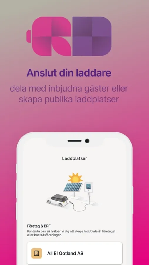 - Skapa en laddplats i appen & dela dem till dina användare eller publikt till alla som har elbil. Vi automatiserar laddning, administration & kopplar det till en trygg säker betallösning.