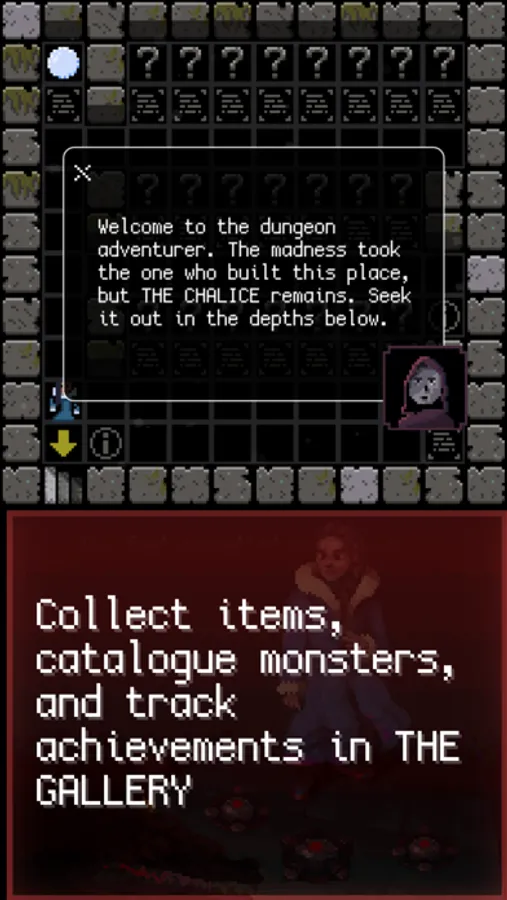 Navigate through the depths of the Smol Dungeon using your wits, traps, and teleporters. You seek the noblest of treasures, The Chalice. But beware! There are dangerous monsters in this dark place. Mind the blood too, we've only got so much soap...