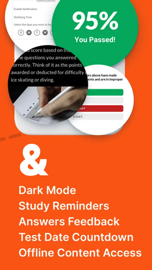 Our G1 driver's test study tool is always with you, working offline to offer access to all lessons, quizzes, and tests without needing an internet connection.