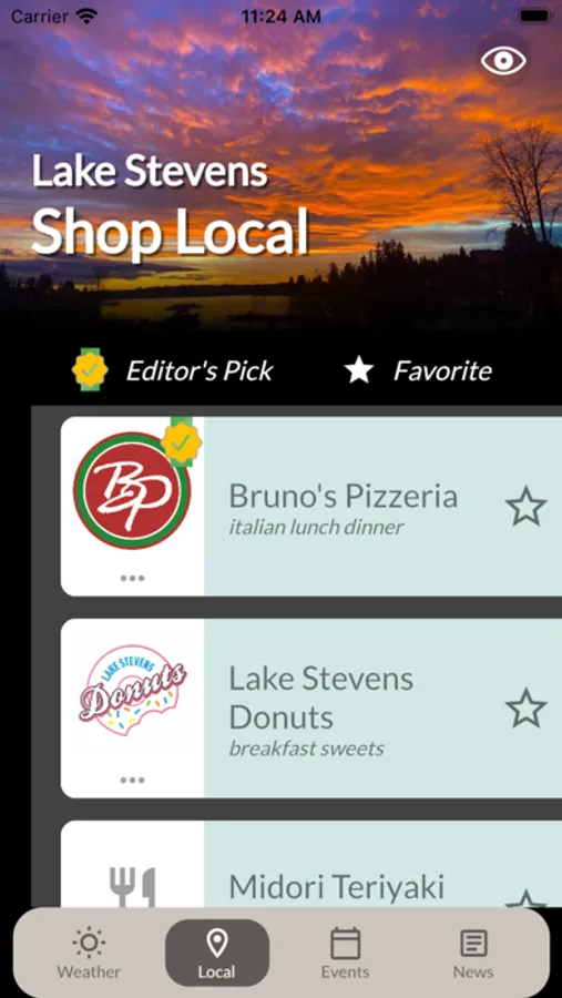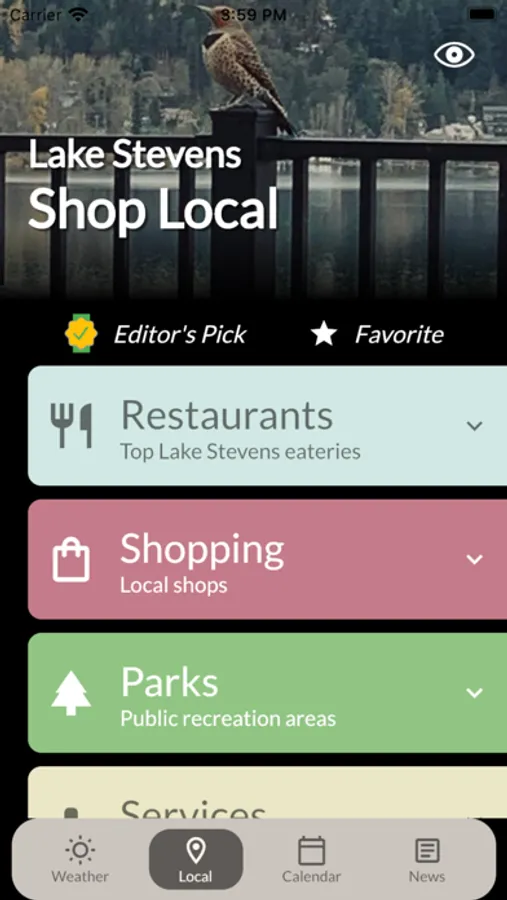 SHOP LOCAL: List of locally-owned businesses, organized by most favorited. Vote for your favorites! One tap to call, get directions, or visit website.