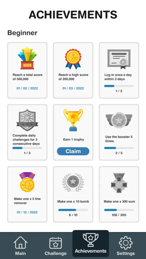• Complete daily challenges and collect trophies.