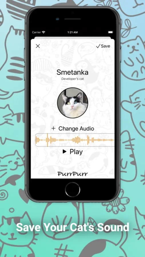 You can add your own cat purring sound extracted from video on your phone or recorder in the app and have your cat always with you even on another side of the world.