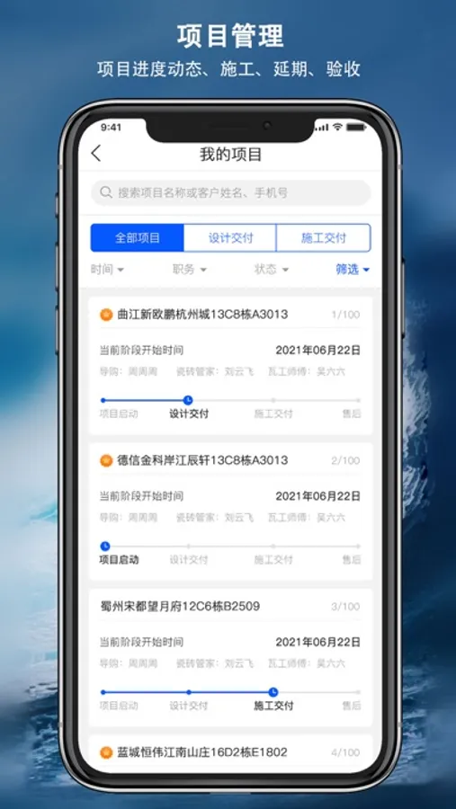 3、精细化管理:项目实时跟进,订单自动流转,全程服务过程透明,让相关服务人员实时掌握最新项目动态