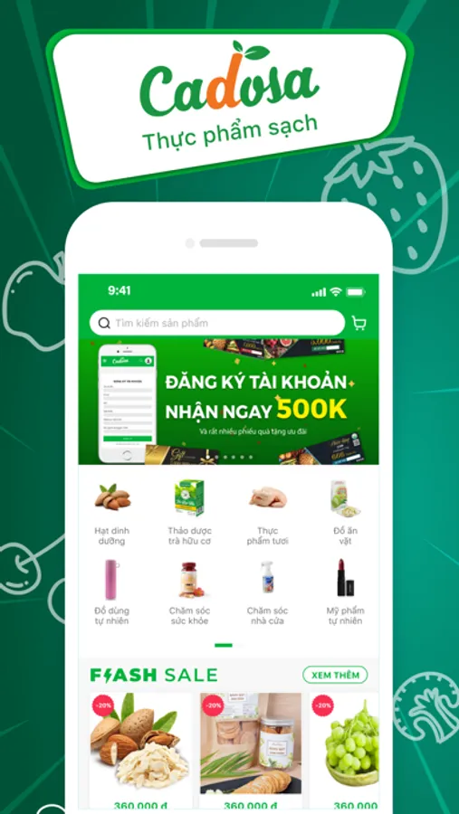 Chào mừng bạn đến với CADOSA - điểm đến của những người tiêu dùng thông minh. Với khao khát thúc đẩy nền nông nghiệp sạch phát triển. CADOSA mang tới cho quí khách hàng những sản phẩm từ THIÊN NHIÊN tươi xanh được chăm sóc theo qui trình bảo vệ SỨC KHỎE người tiêu dùng và MÔI TRƯỜNG sống dịch vụ chuyên nghiệp tận tình, CADOSA nhận được phản hồi tích cực từ phía khách hàng. Ứng dụng được cải tiến liên tục để đem tới trải nghiệm tốt nhất cho người dùng Việt.