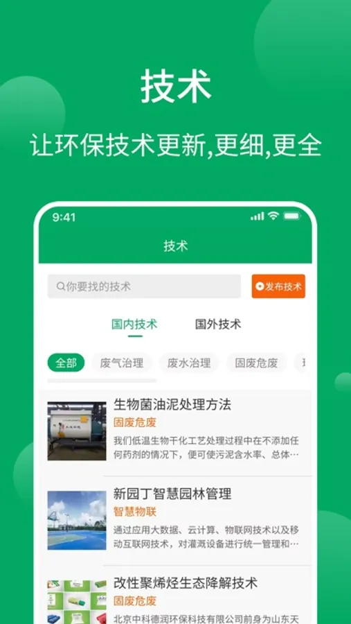 [技术]包含废气治理、废水处理、固废危废、环境修复、资源化、噪声污染、智慧物联、民用环保等八大环保领域,200多项更新、更细、更全的环保技术。