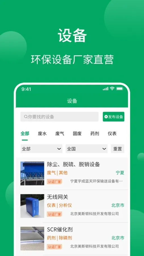 [设备]包含废气、废水、固废、药剂、仪表五大领域的环保设备,实体厂家认证,设备种类丰富,直营无中间商。