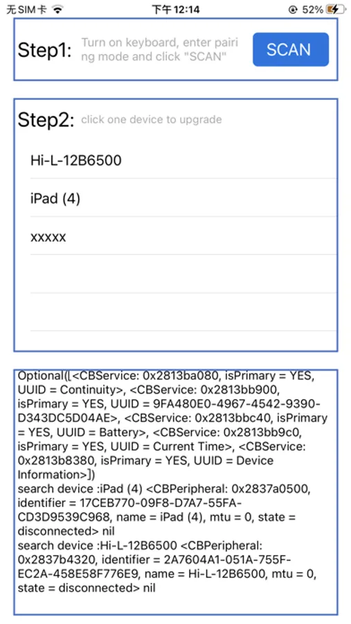 This application mainly provides automatic upgrade of Bluetooth keyboard firmware . Its main function is to search and identify the iPad Bluetooth keyboard, automatically download firmware according to the user's selection ,then upgrade the keyboard.