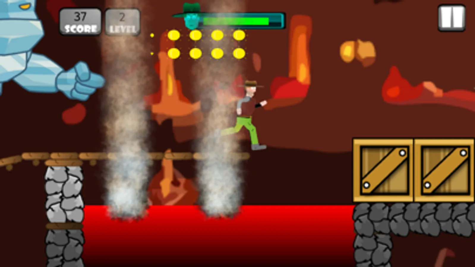 With intuitive controls, players must guide Indiana through the cave's intricate twists and turns, avoiding pitfalls and hazards like falling rocks, sharp spikes, and predatory creatures. The game is a thrilling blend of strategy, timing, and quick reflexes, with unexpected challenges lying in wait around every corner.