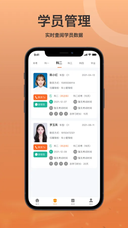 [学员列表] 显示各阶段学员进度,助力教练掌握学员学习情况