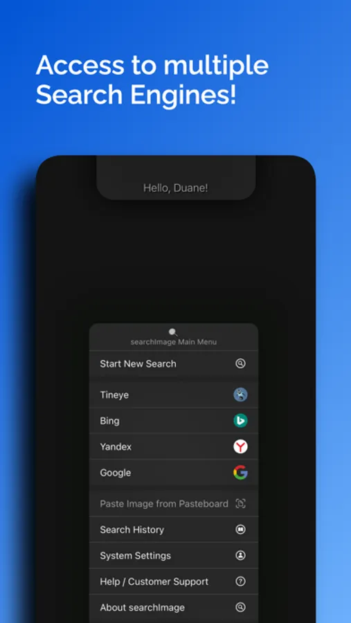 searchImage is an app that will send your image to multiple engines and migrate them all in this app!