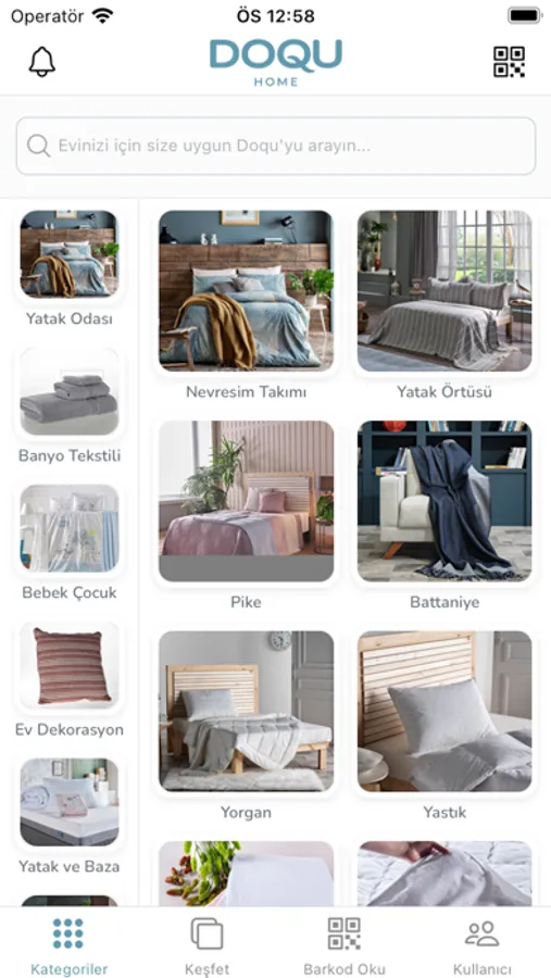 Doqu Home mobil uygulaması, bayi satış elemanlarına ürün bilgileri, ürün fotoğrafları ve ürün varyantlarına kolay erişim imkanı sunmak için geliştirilmiştir.