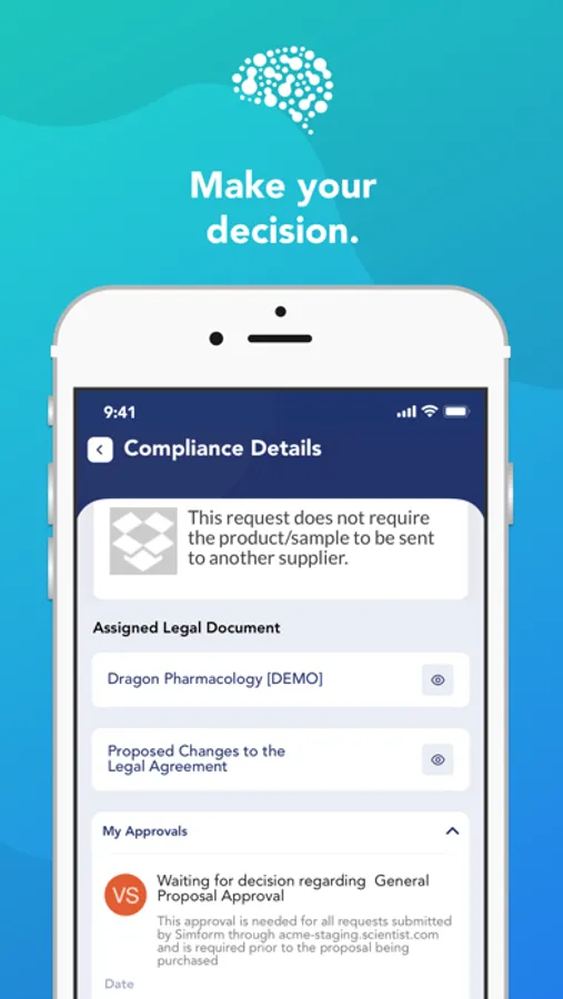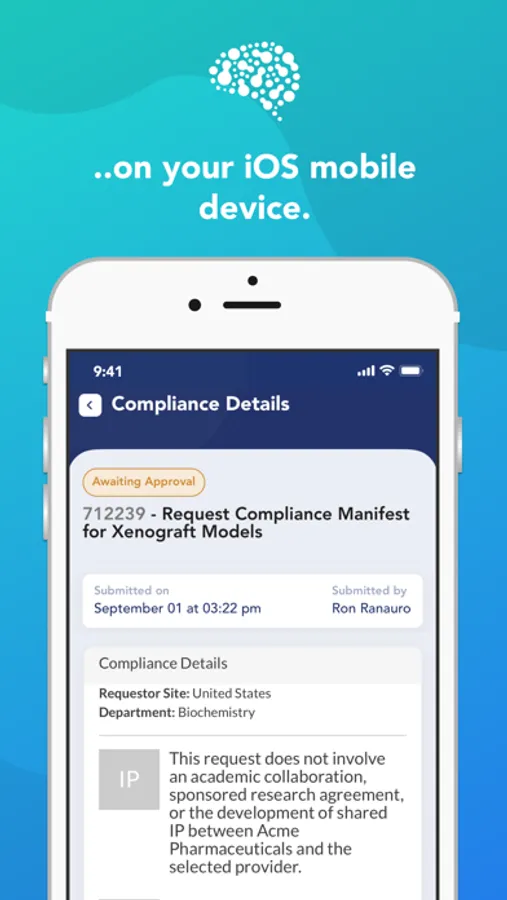 The mobile app approximates the Scientist.com web user experience for purchase request approvals and compliance. iPhone users get untethered notifications on their mobile device and features for approving, delegating, and denying, requests without having to get to the computer. The result is faster approvals and fewer delays in scientific discovery.