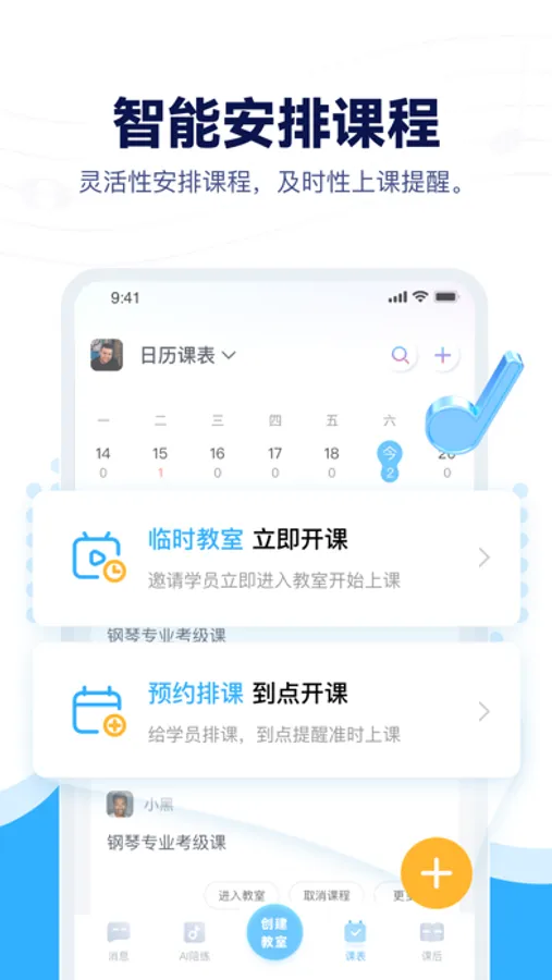 - 音乐直播教室,还原真实练琴场景,支持多种音乐教学工具。