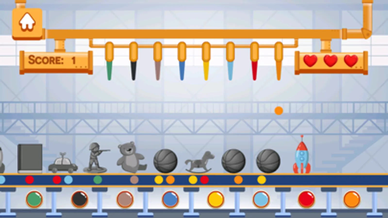 Game play will have a running line, on the chain are black and white toys without color, in the upper middle corner of the screen is a color pump gun, there is a button to change the pump gun color (when pressing the pump). A circle with a falling color will appear.) Your task is to align the toy to move to the bottom of the gun, then press the button to release the falling color circle. At the bottom there will be a display, then all the objects are colored.