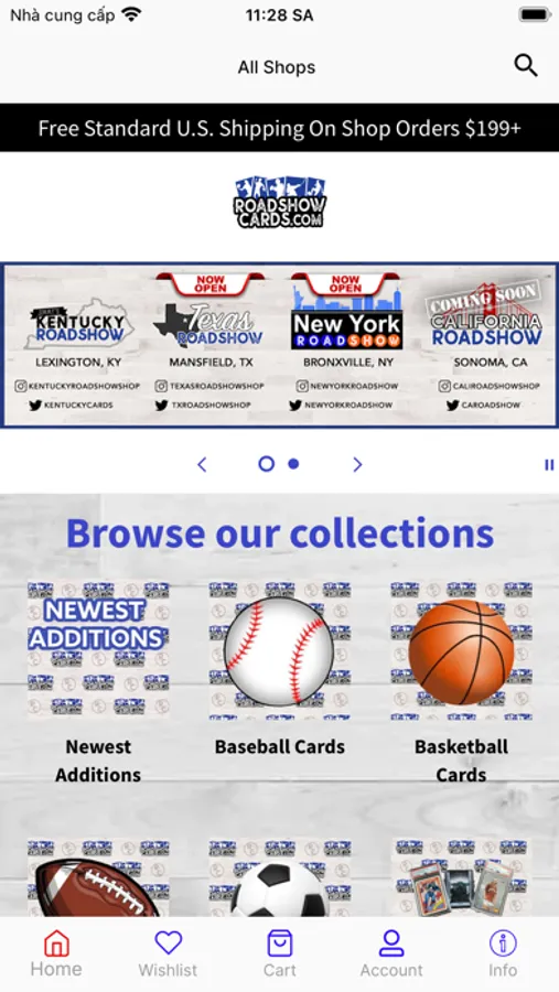 If you're visiting one of our physical locations (Kentucky, Texas, California, New York), a unique geotargeting feature will offer the opportunity to display only cards and wax available in that particular store. But you can always easily order any item available at any Roadshow location through our app.