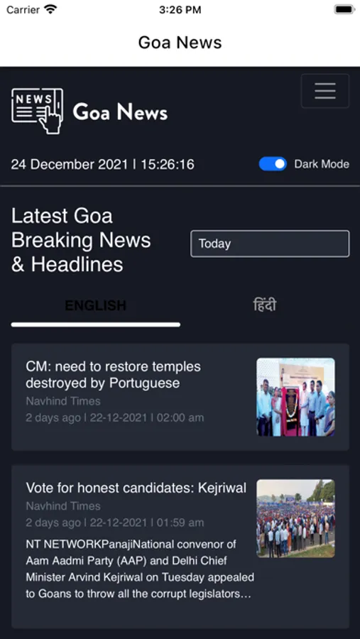 Get Daily updates of the events and the happenings around you. Goa News delivers the latest Goa news in both English and Hindi languages. Stay aware of the latest updates of Goa including Education, Politics, Travel, Business, Festivals and Celebrations, Sports, Entertainment, Culture, Tourism, and Breaking news. Our home feed gives you instant access to the latest news with an elevated experience across your favorite topics. Unleash the simplicity of content discovery and the seamless overall user experience on our app.