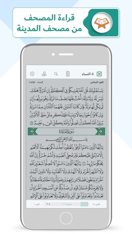 6. Easy navigation to specific Surah or part, through an index menu at the top, or a slider bar at the bottom of the app, or by simply searching the page number in the search bar.