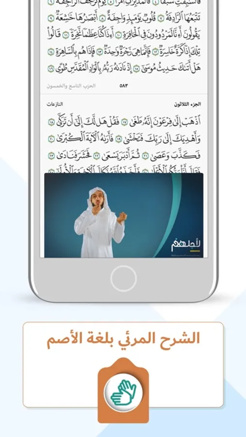 2. Visual interpretation of the meaning of the Quran through a video which conveys the meaning to the user through sign language.