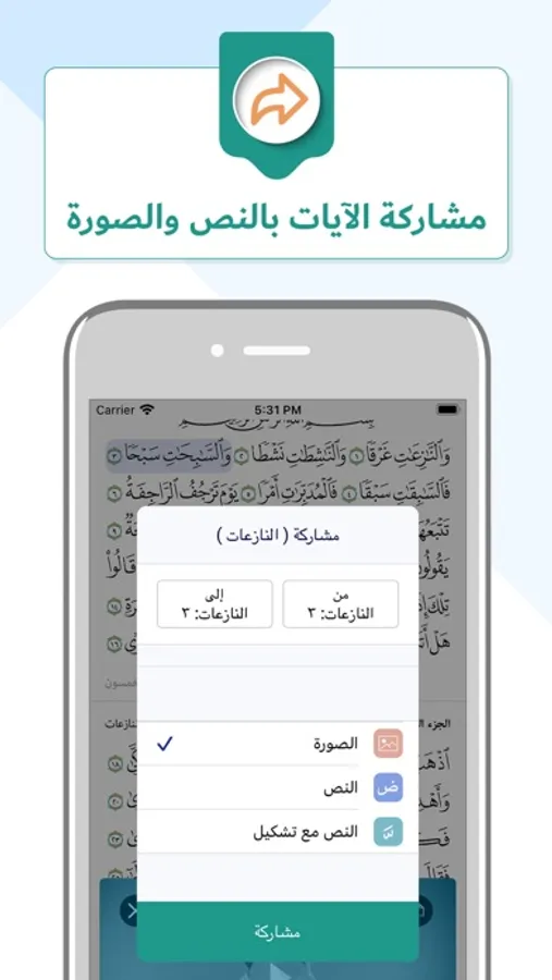 7. Ability to continue recitation from where the user left off by reopening the app to that exact page, and the ability to bookmark verses for future reference.