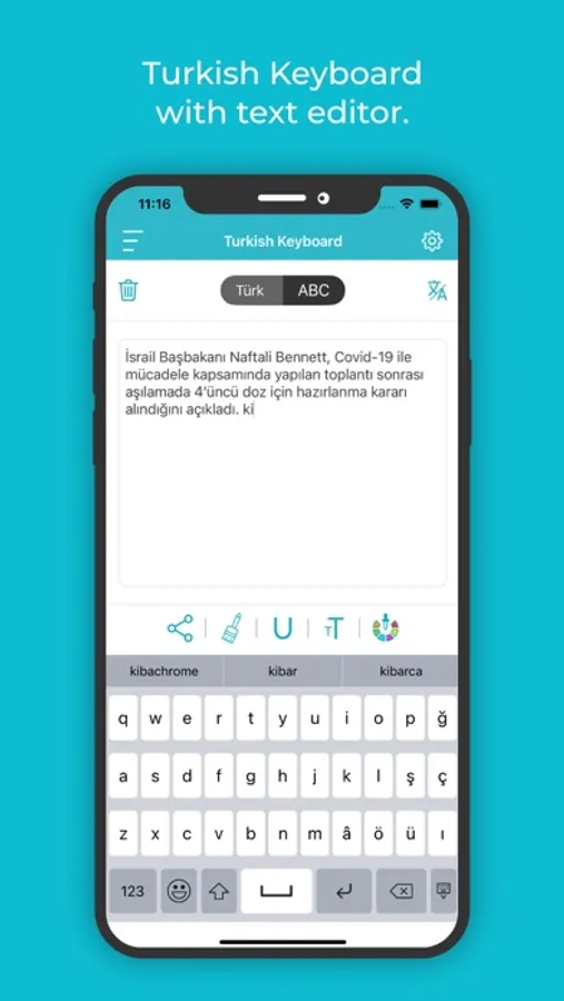 • Another important feature in the Turkish keyboard and Translator, and one that makes this the best Turkish keyboard and Translator for iOS is its adaptability with apps. Use the keyboard extension feature to type Turkish directly into any app.
