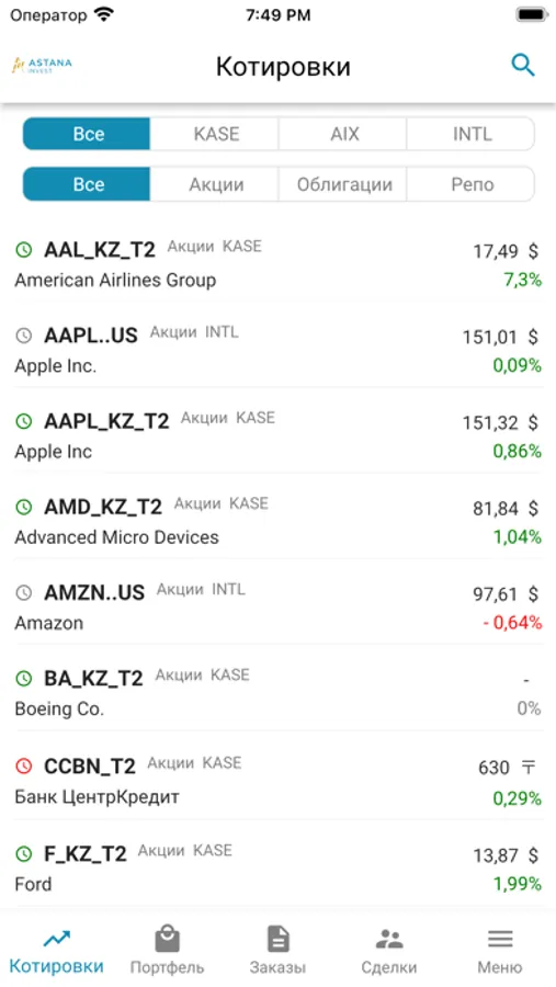 Приложение предназначено для клиентов казахстанской компании АО «Инвестиционный Дом «Астана Инвест», заключивших договор на брокерское обслуживание. Программа позволяет просматривать в режиме реального времени котировки ценных бумаг, а также состояние портфеля клиента.
