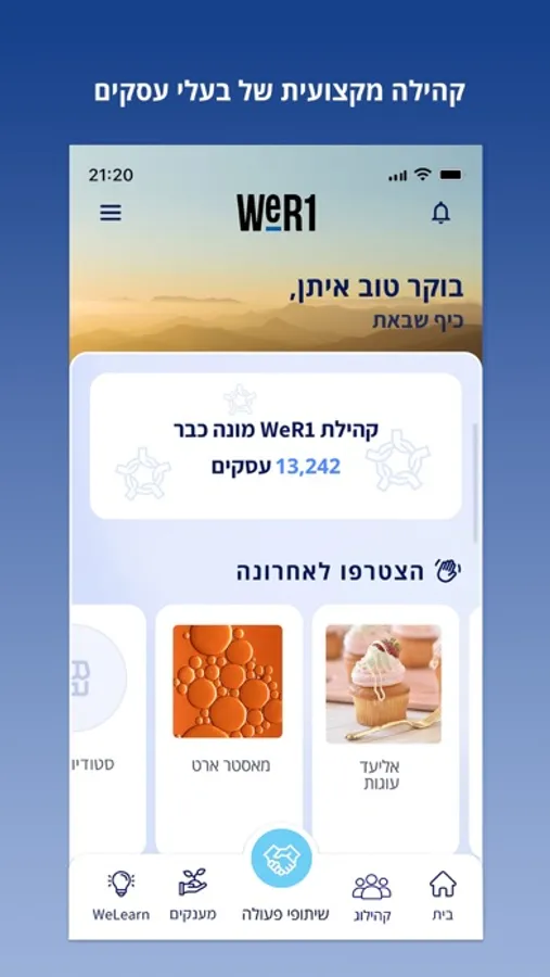 תמכו בתעשיה המקומית ע״י יצירת שיתופי פעולה עסקיים לקניה או מכירה מוצרים ושירותים עבור העסק שלכם בין חברי קהילת העסקים של WeR1.