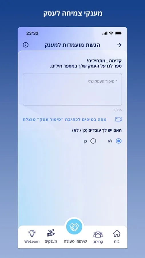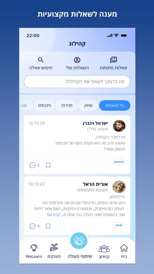 זה המקום שלכם ליצירת קשרים, לשאול שאלות להתלבט ולקבל ותמיכה הדדית ומקצועית מחברי קהילת העסקים.