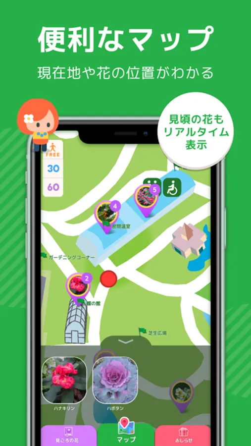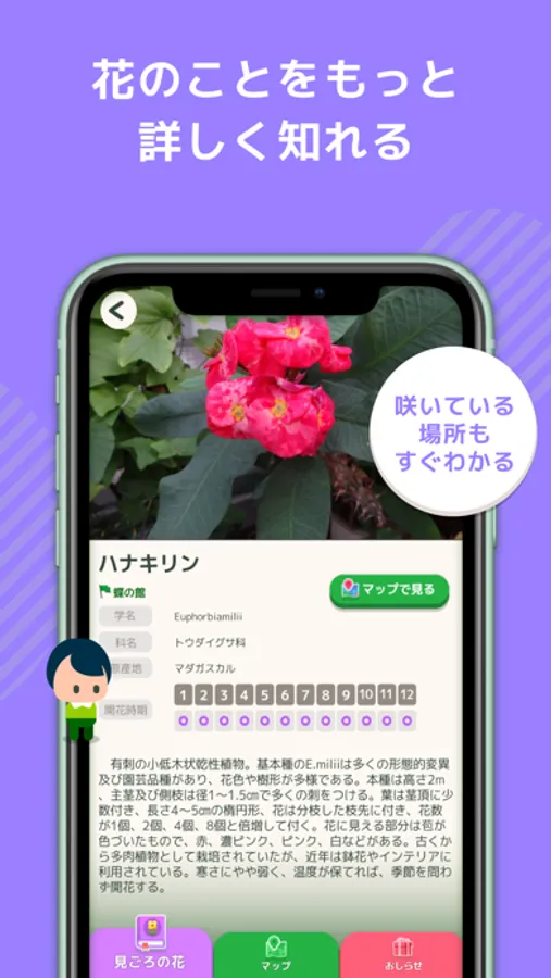 ・最新情報に基づいて見ごろの花を表示するので、見逃す心配がありません