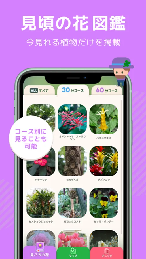 ・コースごとの見ごろの花を一覧でスムーズに確認