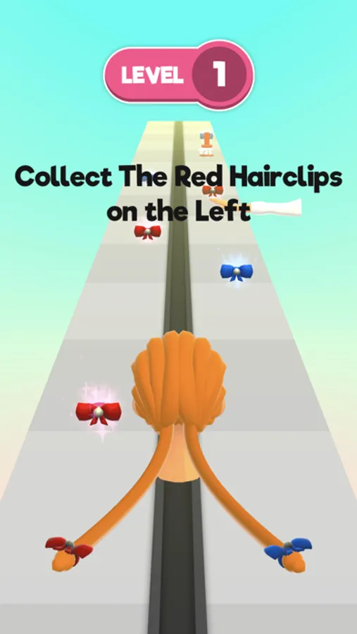 Collect the red hairclips on the right and blue ones on the left! The more hairclips you collect more points you get!