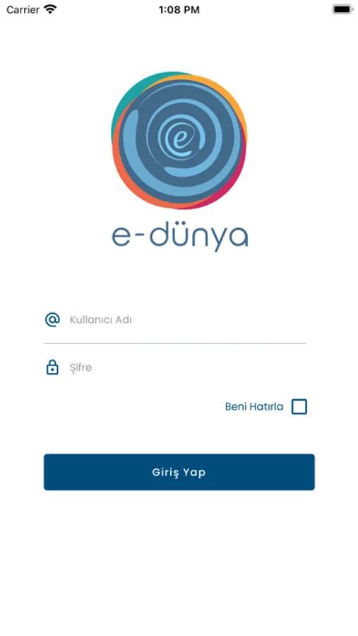 e-dünya mobil uygulama açıldığında, giriş ekranında bulunan Kullanıcı Adı alanından kullanıcı adınızı, Şifre alanından ise şifrenizi girerek Giriş Yap butonuyla giriş yapabilirsiniz.