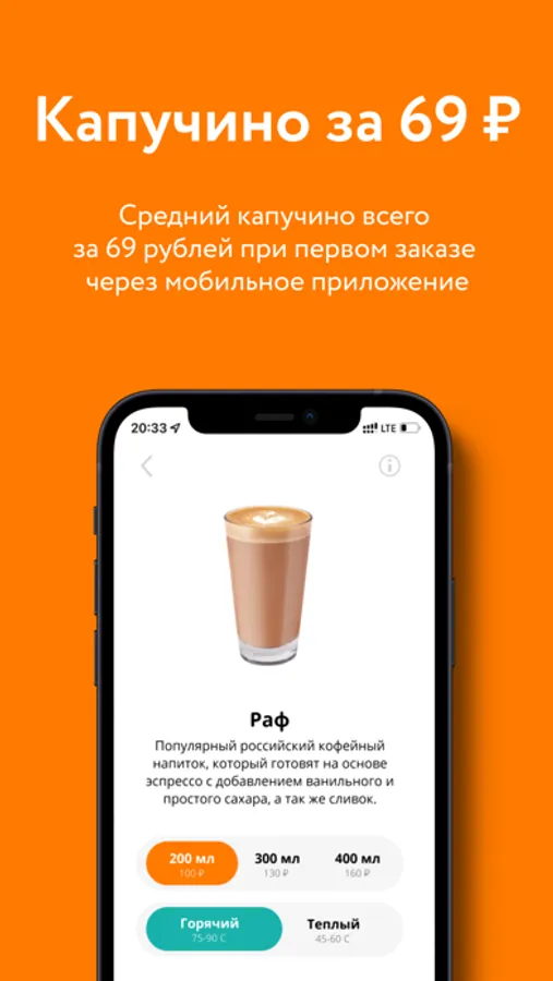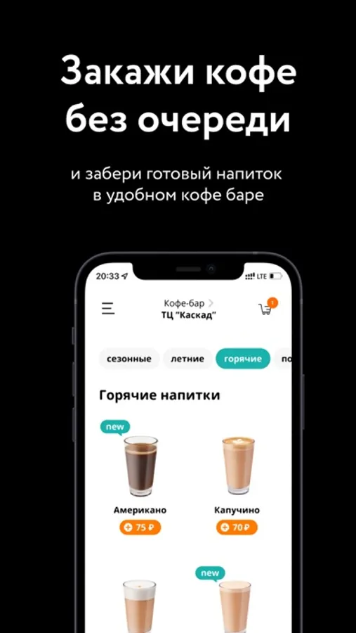 - Мобильный заказ кофе для самовывоза из любого кофе-бара.